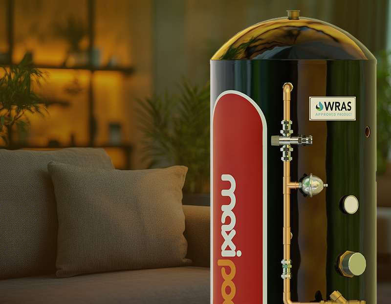 The MaxiPod can be the heart of your house – it doesn’t just store hot water for taps and showers, connect it to radiators and/or underfloor heating too.